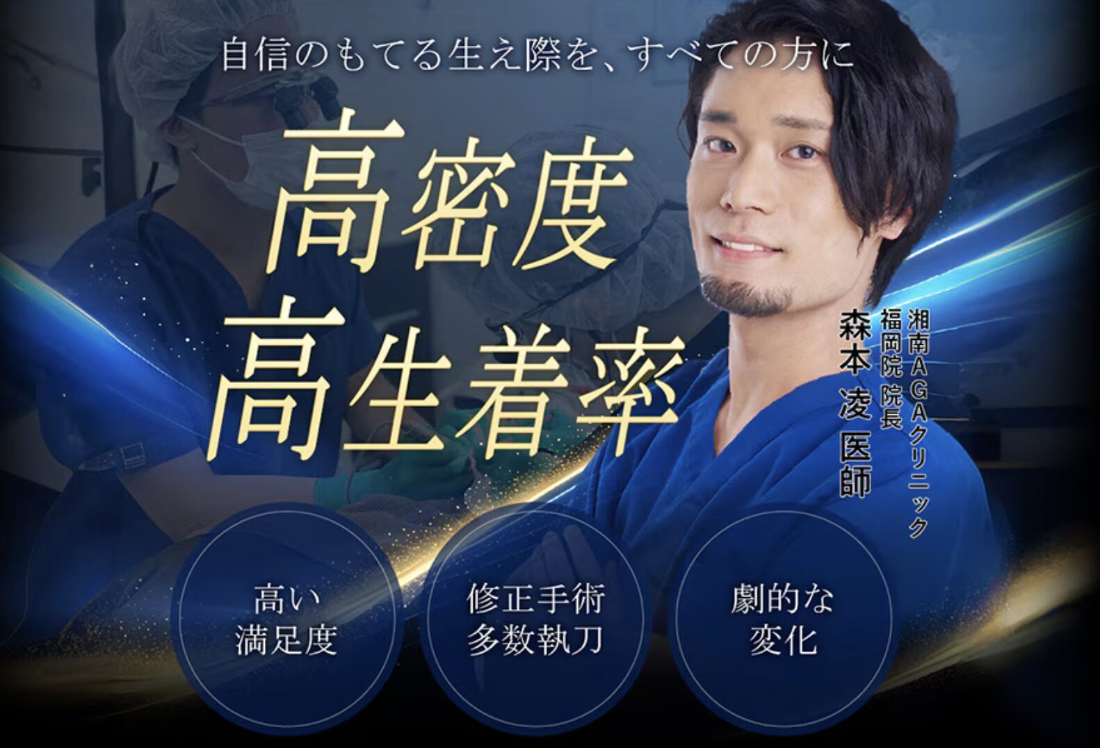 | 特徴 | ・医師による一環した対応 ・刈り上げなしの対応も可能 ・寄り添った姿勢が好評 | ・エミナルクリニックと提携し全国対応可能(天神に医院を立地) | ・リーズナブルな治療費用 ・博多で施術可能 |